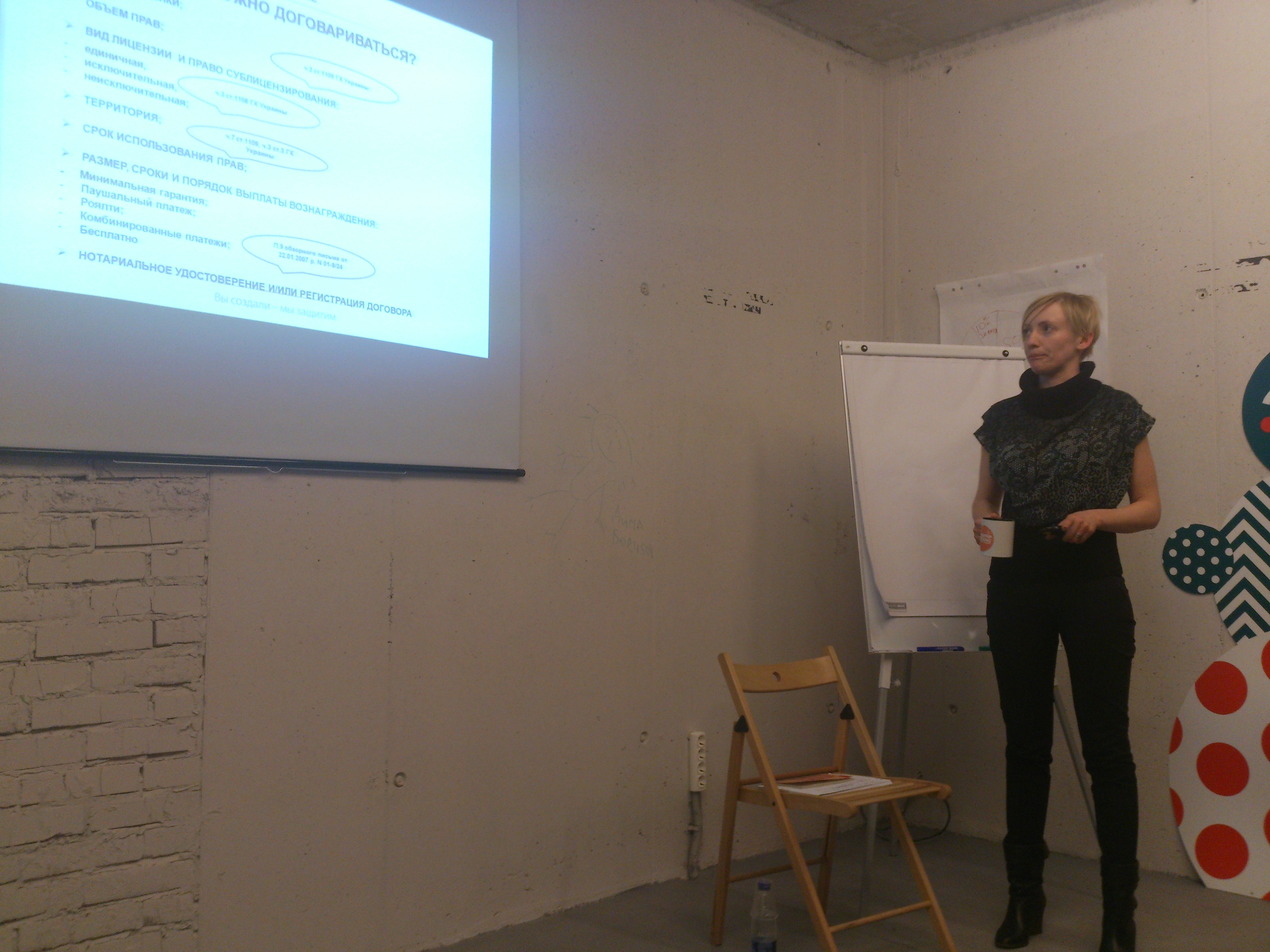 Алина Сероштан рассказывала об объектах интеллектуальной собственности. Подробно, на примерах, объяснила – для чего нужна регистрация торговой марки в Украине и международная регистрация торговой марки, как осуществить эту процедуру и избежать подводных камней. Что такое авторское право и смежные права: как защитить себя и как избежать нарушений чужих авторских прав. Что такое промышленный образец, полезная модель и изобретение, в чем их отличия.